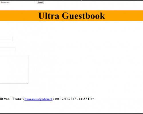 Mein Ziel ist es mit HTML, CSS und PHP ein Funktionierendes Gästebuch zu machen. In diesem Gästebuch sollte man Einträge erstellen, sich als Adminstrator anmelden können und als Administrator dann auch Einträge löschen können.