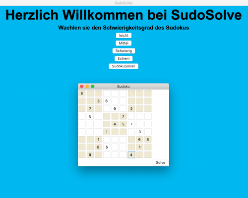 Ich entschied mich eine Programm mit Python zu erstellen, in welcher man man Sudokus lösen kann. Zudem wollte ich dem Benutzer ermöglichen, ein eigenes Sudoku einzulesen und dieses automatisch lösen zu lassen.