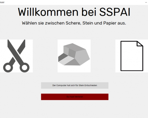 Das Ziel dieser Applikation ist es als User gegen einen Computer Schere-Stein-Papier spielen zu können. Der Computer soll jedoch dazulernen durch Machinelearning. Der Computer sollte damit in der Lage sein öfter zu gewinnen.