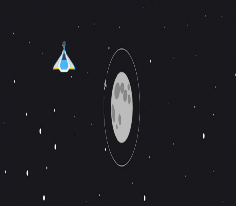 Man kann nun das Raumschiff mit dem Mauszeiger steuern und kann den Spielrand nicht verlassen beziehungsweise aus dem Spielfeld verschwinden.