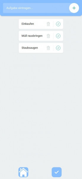- Hauptseite, auf der man Aufgaben eintragen, löschen und als erledigt markieren kann