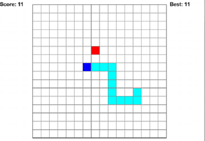 In meinem Spiel kann man eine Schlange in alle Himmelsrichtungen bewegen. Wenn man mit der Schlange Äpfel einsammelt, wächst die Schlange um ein Feld. Zudem wird wieder ein neuer Apfel generiert, wenn man diesen isst. Wenn man einen Apfel einsammelt erhöht sich der Score um 1. Ausserdem erscheint ein Alert mit einer Nochmal-Spielen Auswahl, wenn man stirbt. Wenn man die Leertaste drückt pausiert das Spiel.